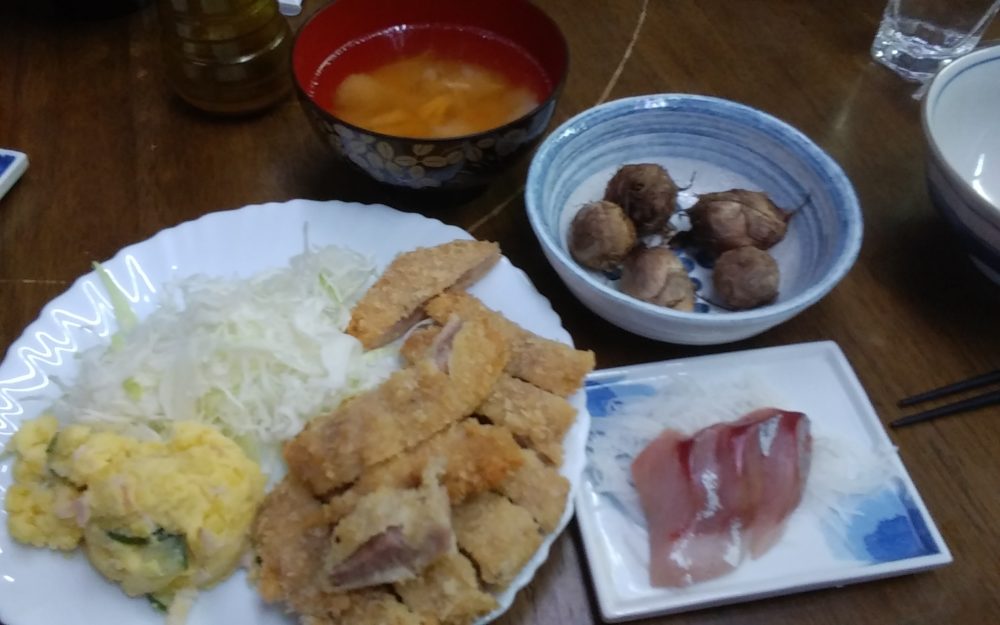 1カ月1度の『みんなの集い』、夜ごはんもごちそうです!皆さんのリクエストのトンカツです。